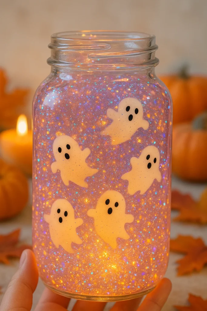 And if youāre using iridescent glitter (which I totally recommend), it reflects light at different angles. Thatās why it almost looks like the ghosts are glowing from within.