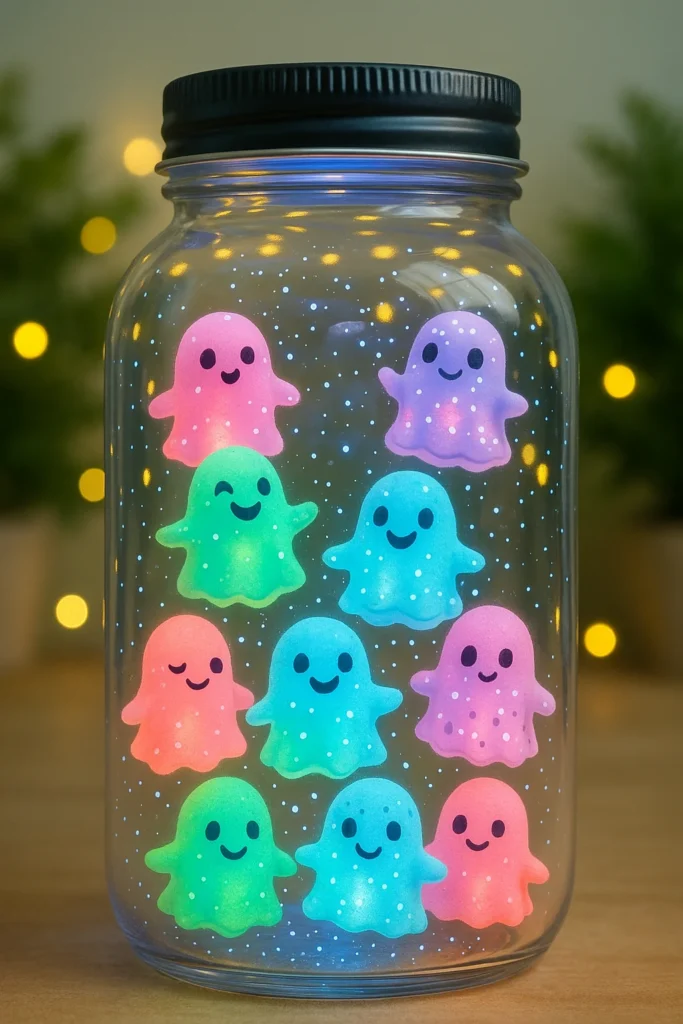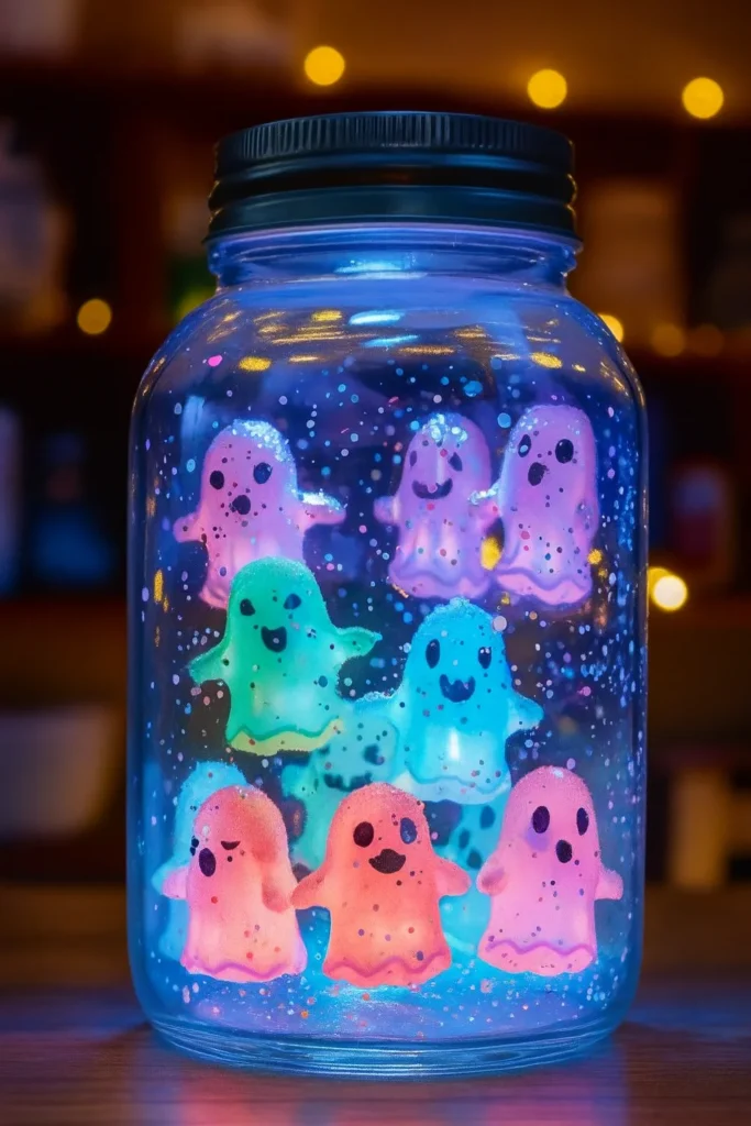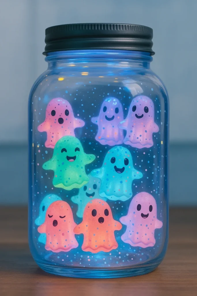 I once tucked a small color-changing LED light inside the base. With the lights off, the jar went from green to purple to red, making the ghosts look like they were shifting between ghost realms. The kids lost their minds over it. Total win.