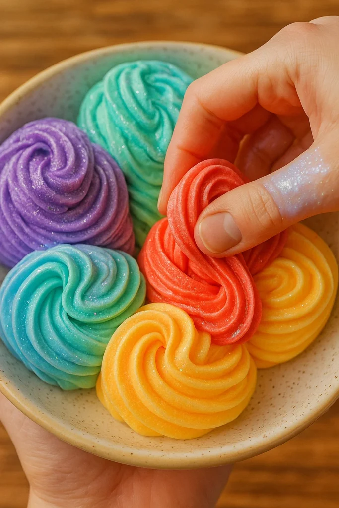 I used to skip glitter because I was terrified of the cleanup. Now? I just accept it. Glitter makes the dough feel magical, and kids lose their minds over it. You don’t need much—just a sprinkle in each bowl—and suddenly it’s “Frozen” meets science class. For safer use, go with biodegradable glitter or large flake types, especially for younger kids.